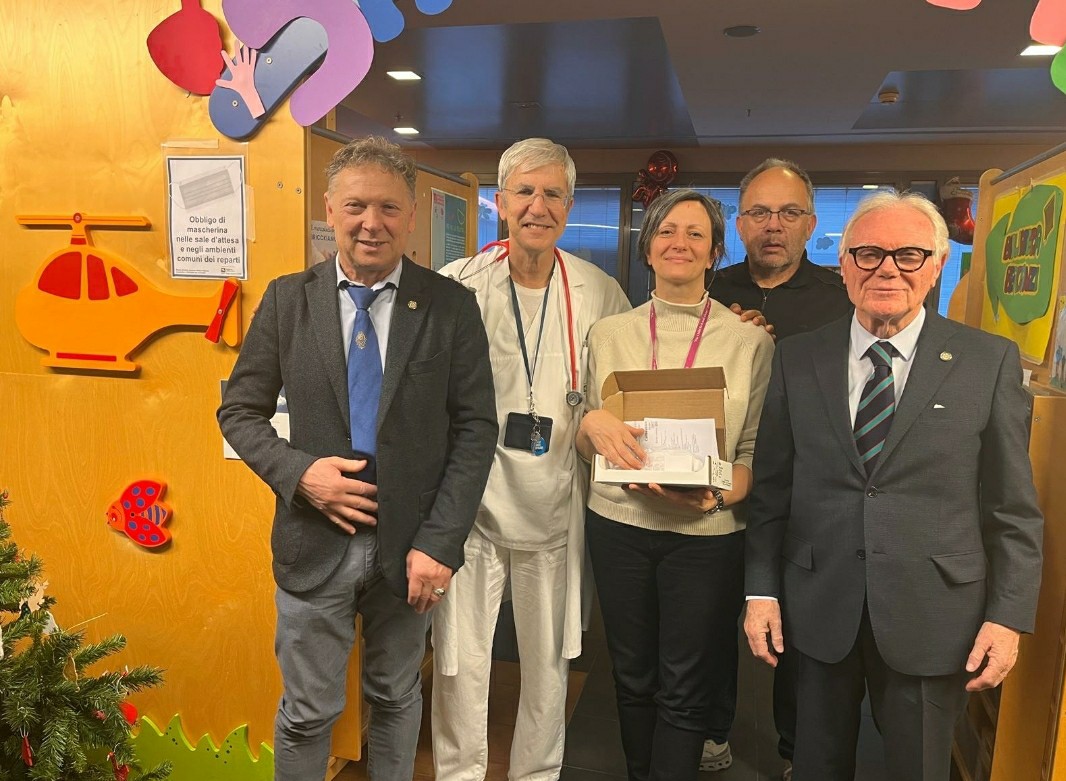 Si è tenuta oggi, 10 dicembre, la consegna dei termometri pediatrici all'Ospedale "Papa Giovanni" di Bergamo, per il Reparto di ematologia oncologica pediatrica da parte della delegazione di Bergamo di Associazione Nazionale Cavalieri della Repubblica.